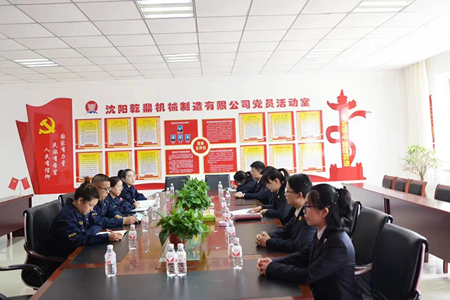 2022年5月19日上午10时,辽中区人民检察院野云涛检察长、黄有卓副检察长与党支部书记苏兰兰等党员一行,亲临沈阳乾鼎机械制造有限公司,双方共同举行了“党建+营商实践基地启动仪式”,并对帮扶共建活动内容等方面进行了亲切的座谈。会上,野云涛检察长做出重要讲话,以理论联系实际,企业可以就自身比较关心的法律、财务等工作和生活中的问题进行反馈,免费给予培训和指导。